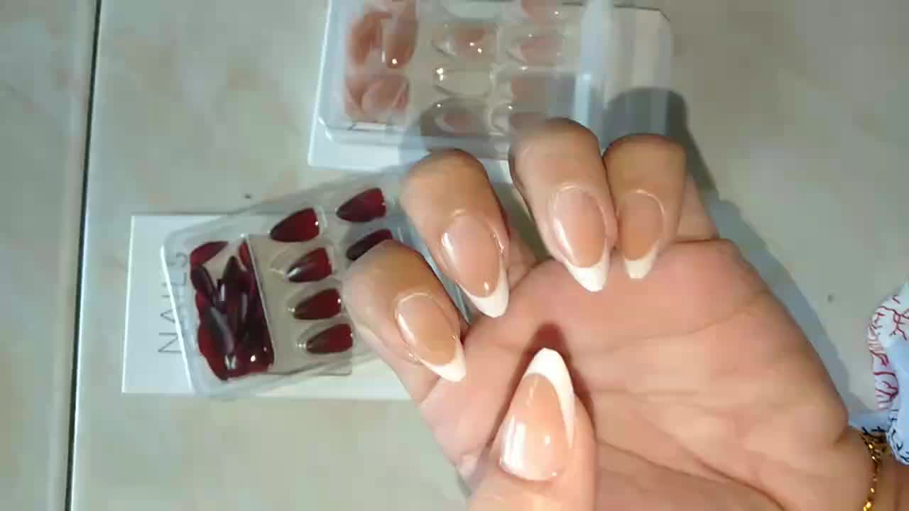 [W1594] Kuku Palsu Premium Simple French isi 24 pcs Tahan Air Fake Nails ArtJumlah : 24 Pcs + Lem Cair + Lem JellyJenis : Jari TanganMotif : Simple FrenchBISA TAHAN HINGGA 2-3 MINGGU Cara Pemakaian:1. Jika kuku asli kamu panjang, potong dan kikir pada bagian pojoknya.2. Pilihlah kuku palsu dengan ukuran yang sesuai dengan jari kalian.3. Lukis lem di bagian belakang ujung kuku palsu4. Tekan ke bawah kuku selama kurang lebih 15 detik sampai ujungnya menempel ke kuku.5. Selesai Potong ujung Kuku Palsu dan Kikir sesuai panjang yang Kalian inginkan NOTE :- FREE BUBBLE WRAP- Senin - Jumat Cut off pengiriman jam 16.00- Sabtu Cut off Pengiriman Jam 14.00 Minggu/Tanggal merah Libur