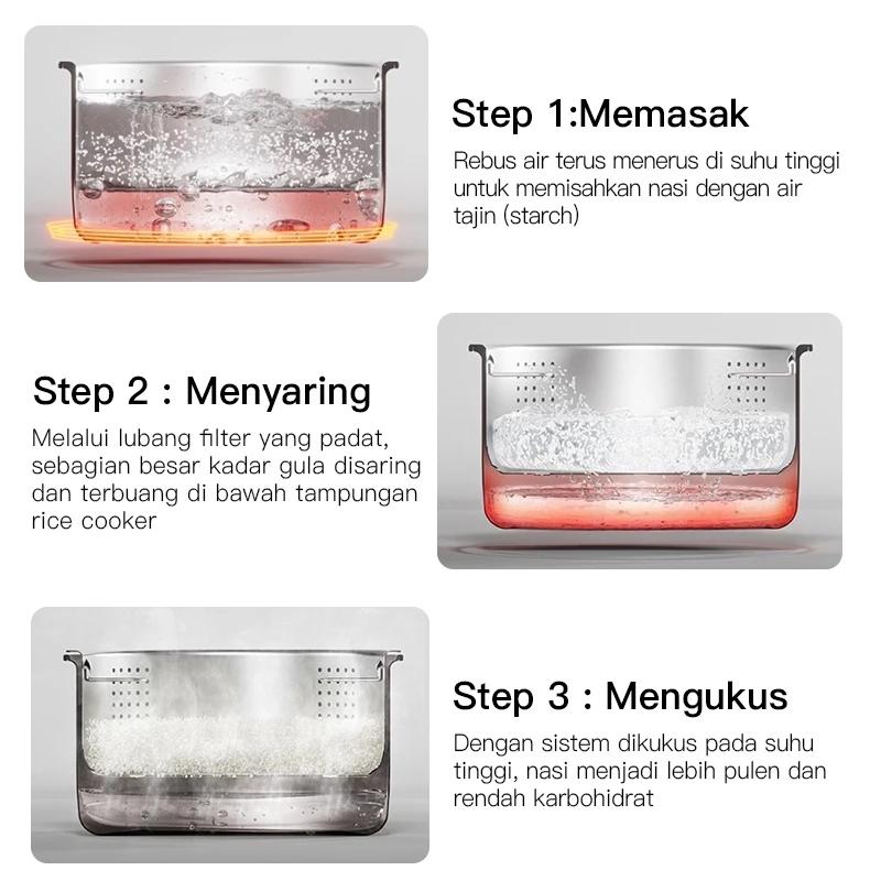 Low Carbo & Sugar Function – Teknologi pemisahan nasi dan air tajin selama proses memasak dapat mengurangi kandungan gula pada nasi