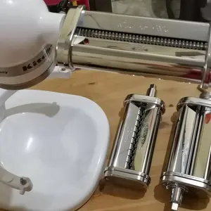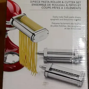 KitchenAid Stand Mixer Attachment 3-Piece Pasta Roller amp; Cutter Set KSMPRA. Attachment yang dapat digunakan di semua tipe Stand Mixer KitchenAid, Untuk membuat pasta segar segar yang cepat dan mudah di dapur anda menggunakan 3-Piece Pasta Roller amp; Cutter Set. Untuk memotong adonan pasta yang halus dan bersih. Menggiling lembaran pasta 6 inci dengan 8 pengaturan ketebalan untuk menyesuaikan dengan ketebalan lembaran yang Anda inginkan. Syarat dan ketentuan yang berlaku di KitchenAid Official Store : β€’ Jam operasional toko dan pengiriman - Senin – Jumat, 09:00 – 17:00 - Hari sabtu/minggu dan hari besar, toko tutup. - Di luar waktu operasional toko, chat akan slow respon. β€’ Produk dengan berat di atas 10 kg wajib menggunakan opsi kirim JNE, atau dapat konsultasi dahulu via chat. β€’ Order di bawah jam 12:00 akan diproses kirim pada hari yang sama. β€’ Order di atas jam 12:00 akan diproses kirim hari berikutnya. β€’ Claim kerusakan, kekurangan atau minus apapun pada produk diwajibkan memberikan video unboxing setelah barang diterima. β€’ Konsumen yang sudah membeli produk kami dianggap sudah membaca, mengerti dan menyetujui peraturan yang berlaku di toko ini. Jangan sungkan untuk bertanya lebih jauh lagi mengenai produk maupun hal lain yang belum cukup jelas dari data yang telah tercantum di atas. Happy shopping :)