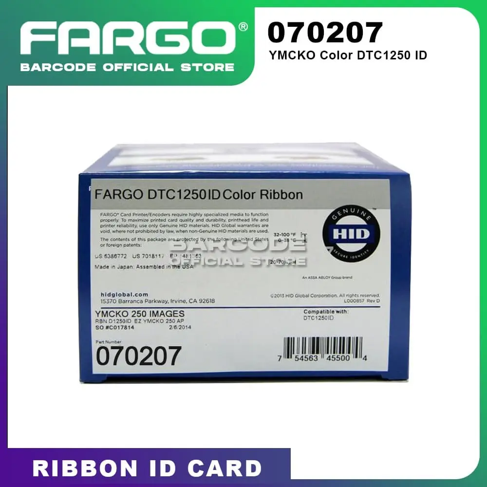 RIBBON COLOR PRINTER FARGO DTC1250ID Ribbon Fargo Printer Kartu (ID Card) : - Fargo color ribbon for Fargo DTC1250ID - Part number: 070207 - Print : 250 sisi Rekomendasi Produk Lainnya : Cleaning Kit Fargo DTC1000 : cleaning-kit-id-card-printer-fargo-dtc1250e-dtc1000-pn-086177 Blank Card : kartu-pvc-blank-card-p-card-bc30-bc-30-mil-id-card-polos-isi-250-pcs Rekomendasi untuk area Jakarta pakai GoSend Order Sekarang Sebelum Kehabisan!