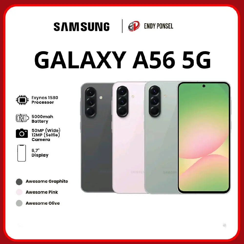 Samsung Galaxy A56 5G Prosesor Exynos 1580 Baterai 5000mAh Kamera 50MP Layar 6.7 Inci Garansi Resmi 12 Bulan Bluetooth Smartphone.