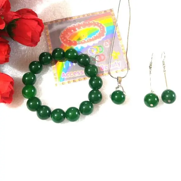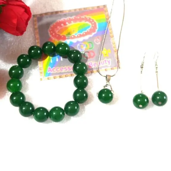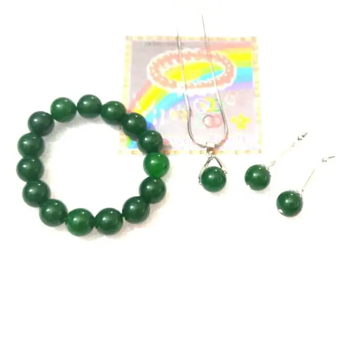 5. Perhiasan Set Kalung-Gelang-Anting Batu Giok Hijau Botol Asli Batu