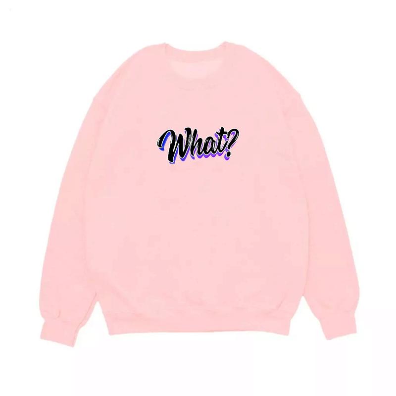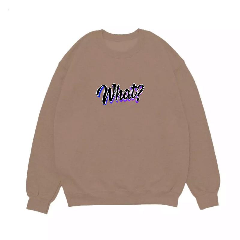 5. BAHAN FLEECE Atasan Sweater Oblong Pria & Wanita Remaja kekinian WHAT? Korean Style Basic