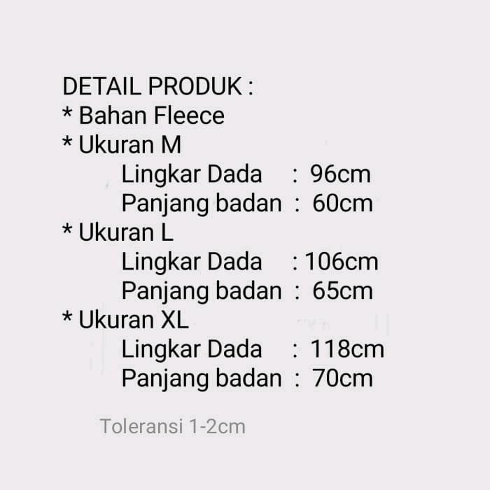 BAHAN FLEECE Atasan Sweater Oblong Pria & Wanita Remaja kekinian WHAT? Korean Style BasicHALLO, SELAMAT DATANG di GUDANG FASHION REMAJA. ^^ DETAIL PRODUK :ATASAN SWEATER OBLONG * Bahan Fleece * Ukuran M Lingkar Dada : 96cm Panjang badan : 60cm * Ukuran L Lingkar Dada : 106cm Panjang badan : 65cm * Ukuran XL Lingkar Dada : 118cm Panjang badan : 70cm Cara Pembelian (Mohon Dibaca) : Klik Keranjang, Pilih dan masukan satu persatu Variasi & Quantity produk yang anda inginkan dahulu. Lalu klik "Check Out", isi alamat, lanjut opsi "Pengiriman" dan terakhir opsi "Pembayaran" - Pengiriman Dijamin FAST 1x24 Jam Resi Terinput - 100% Barang kami produksi sendiri - 99% Ready sesuai Stok & Warna Varian Yang Tersedia - Bisa Dropship, aktifkan opsi kirim sebagai dropshipper dan tuliskan data nama toko pembeli serta kontaknya saat proses checkout Pesanan -Tidak bisa tukar warna/ukuran di chat ataupun catatan pembeli, mohon segera checkout ulang jika salah variasi sebelum pesanan diproses oleh penjual - Untuk Dropshipper kami jamin 100% Aman - Pembayaran di atas jam 07.00 WIB akan ikut pengiriman H+1 - Jika ada pertanyaan dan masalah sebelum maupun setelah barang sampai mohon chat untuk solusi Pembelian Grosir, Keluhan Pelanggan, & Saran Dapat Menghubungi C.S Kami. (CS Kami Beroperasional Dari Jam 08.00 – 17.00 WIB) Terima Kasih sudah Berkunjung di Toko Kami Selamat Berbelanja yah Sista & Juragan Terima Kasih. #sweater #hoodie #pakaianmurah #bajumurah #grosir #reseller #dropshipper #oversize BAHAN FLEECE Atasan Sweater Oblong Pria & Wanita Remaja kekinian WHAT? Korean Style BasicBAHAN FLEECE Atasan Sweater Oblong Pria & Wanita Remaja kekinian WHAT? Korean Style Basic