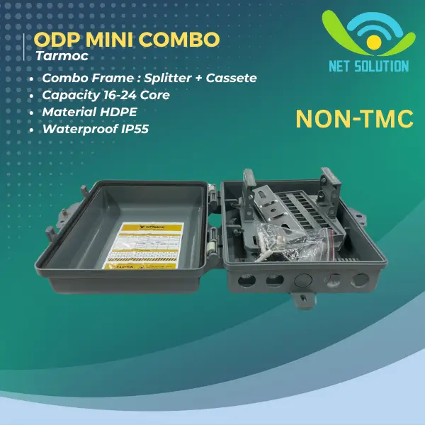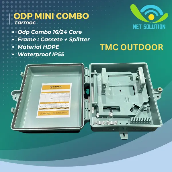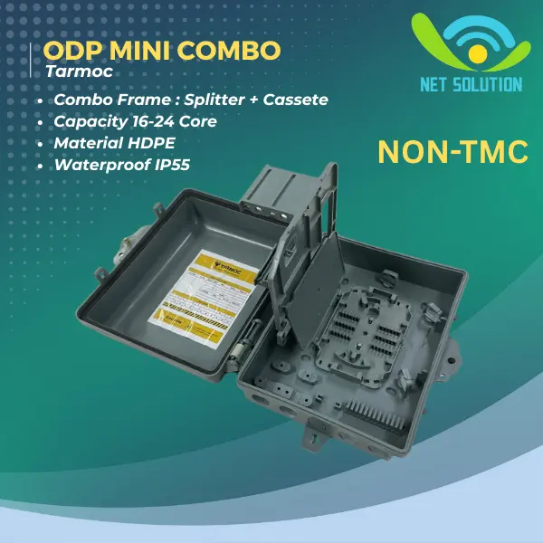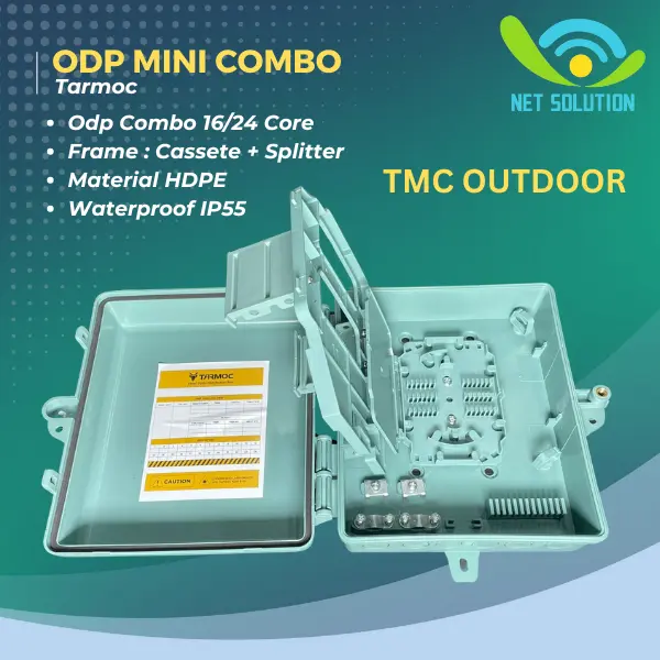 Deskripsi : Combo ODP Mini Box 16/24 Core Tray Type / Steel Tube Splitter Fiber Optic ODP 16/24C Outdoor & Indoor Tanpa Adapter,Pigtail,Splitter ( KOSONGAN ) Tanpa Video Unboxing yang Real, Kami TIDAK Menerima Komplain Tidak Garansi Harga satuan ( Hanya dapat 1 unit ODP ) Varian : - NON TMC - TMC OUTDOOR Isi Produk: 1 x Unit ODP Combo 1 x bungkus Accessories 1 x Bracket + Klem Ring Stainless 9 Inch 75-235mm (Besar) Product Name : Combo ODP Mini 16/24C Type : ODP/NAP Hole : 6 Capacity : 16-24 core Material HDPE Frame Combo Coupler and Cassette Waterproof IP55 - NON TMC Dimensi luar : panjang : 26,2 cm lebar : 22 cm tinggi : 9,5 cm Dimensi dalam : panjang : 22 cm lebar : 17 cm tinggi : 9,5 cm - TMC OUTDOOR Dimensi luar : panjang : 26,5 cm lebar : 23,5 cm tinggi : 8,5 cm Dimensi dalam : panjang : 22 cm lebar : 18 cm tinggi : 8,5 cm ( Lebih jelas nya ukuran dimensi bisa di lihat di gambar ) Fiber Distribution BOX Mini Outdoor , 16-24 Core 6 Whole IN , Support Precon Fiber , Plastic Housing