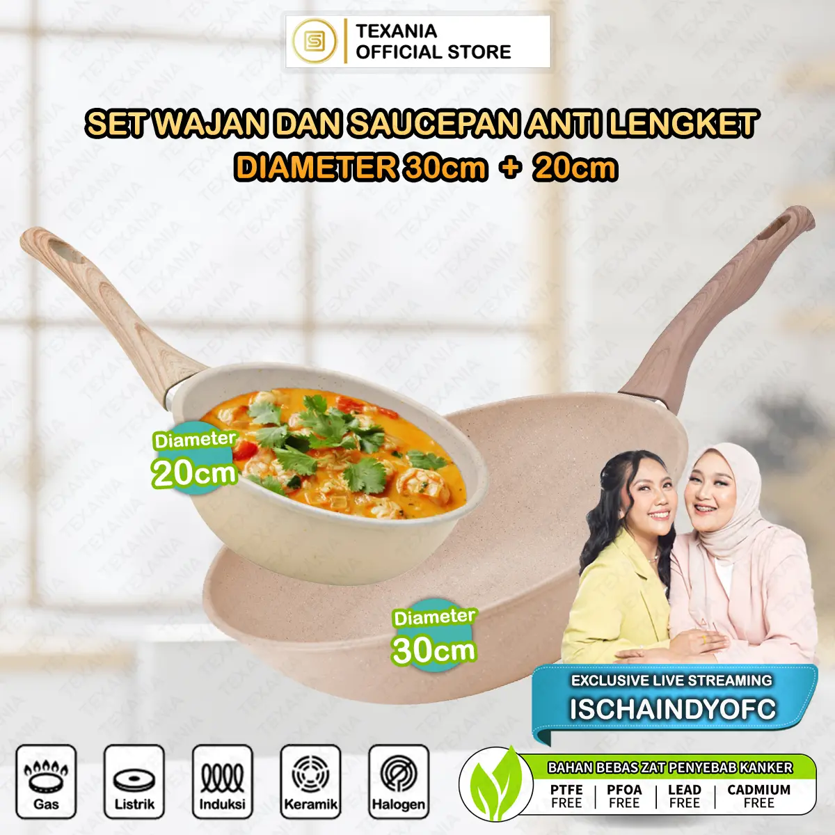 TEXANIASET Wajan Anti Lengket 30cm + Saucepan 20cm