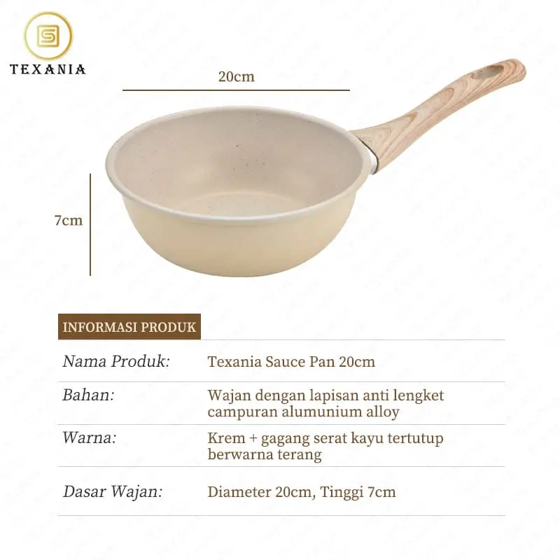 ยทWajan dengan diameter 30 cm, ideal untuk kebutuhan memasak Anda. Kapasitas Besar cocok untuk memasak makanan favourite keluarga.TEXANIA Saucepan 20cm