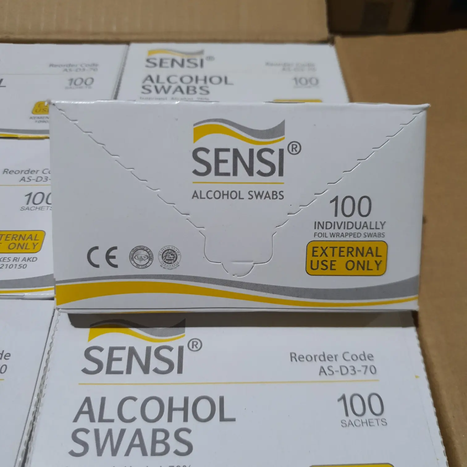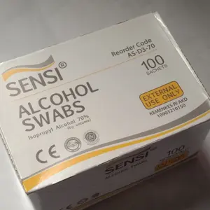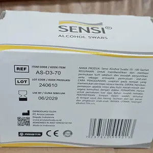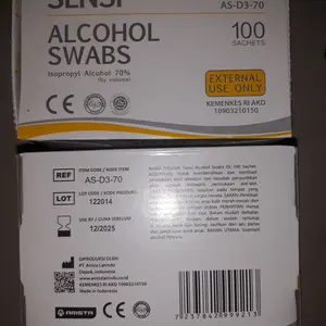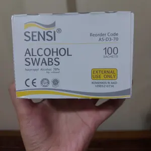 Alcohol swab yang dikirim sesuai gambar dan deskrispi, merk Sensi paling nyaman untuk digunakan. Produk pendukung medis yang sangat terpercaya.