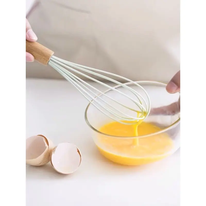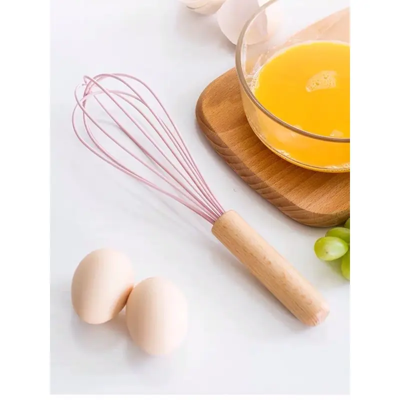 5. WHISK KOCOKAN TELUR SILICONE GAGANG KAYU PENGADUK TELUR WHISK KUE